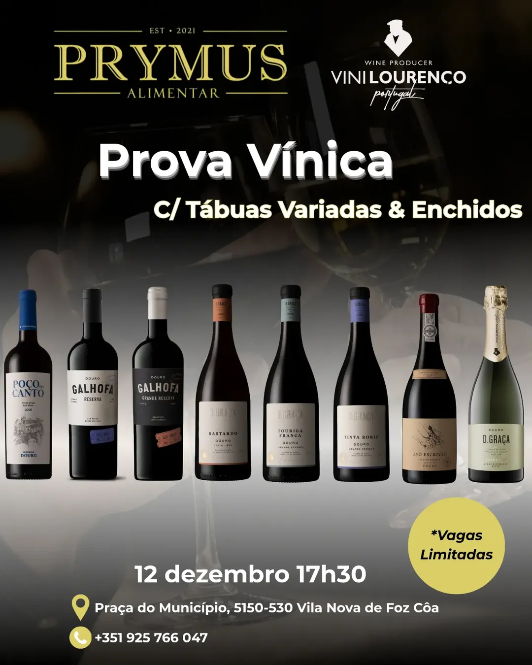 A luz suave realça os reflexos escuros e brilhantes do vinho, transmitindo a atmosfera envolvente e sofisticada de uma prova exclusivamente dedicada a vinhos.